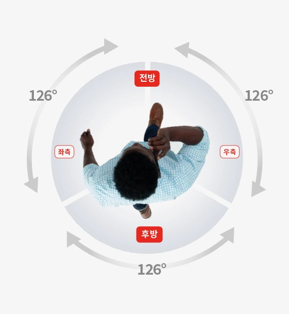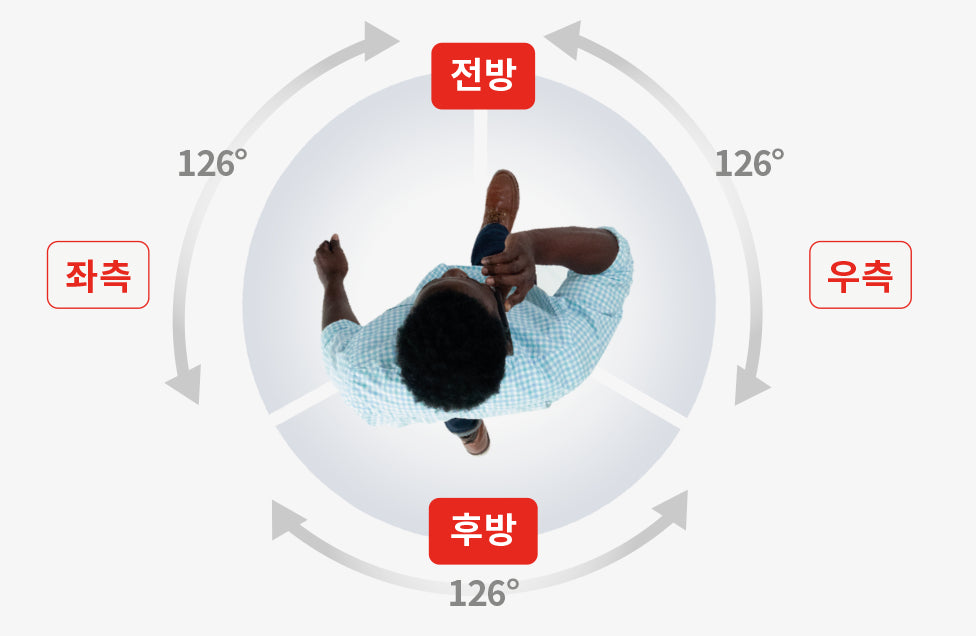 따라서 아래와 같이 사용자 주변의 전후방을 모두 촬영할 수 있어 사고 발생 시 더 정확한 증거 확보를 돕습니다.