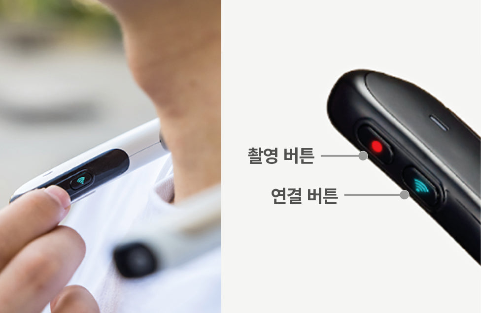 웨어러블 넥밴드 형태의 카메라이기 때문에 언제 어디서든 활동에 제한 없이 두 손을 자유롭게 사용하며 촬영할 수 있어 더욱 안전하고 편리합니다.